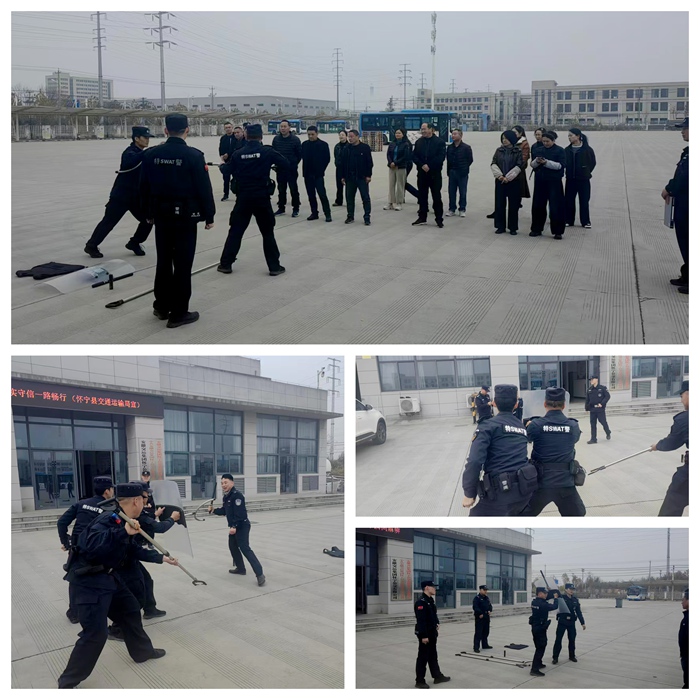 12月10日15時(shí),為提升公交企業(yè)消防管理與防暴應(yīng)急能力,保障乘客安全和公共交通秩序,懷寧縣特警大隊(duì)、馬廟派出所聯(lián)合懷寧公交企業(yè)開展消防、防暴實(shí)戰(zhàn)演練,30名相關(guān)人員參與。