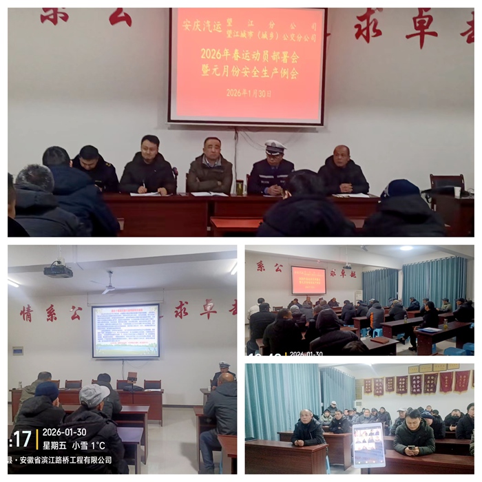 為保障春運(yùn)期間道路運(yùn)輸安全,1月30日晚,望江城市(城鄉(xiāng))公交分公司召開(kāi)2026年春運(yùn)動(dòng)員部署會(huì)暨元月份安全生產(chǎn)例會(huì)。望江縣道路運(yùn)輸管理服務(wù)中心、縣交警大隊(duì)蒞臨指導(dǎo)會(huì)議?紤]到鄉(xiāng)鎮(zhèn)駐點(diǎn)駕駛員的實(shí)際,會(huì)議創(chuàng)新采用微信視頻群聊方式,確保了全司60余名駕駛?cè)、安全員等“面對(duì)面”參會(huì),實(shí)現(xiàn)培訓(xùn)全面覆蓋。